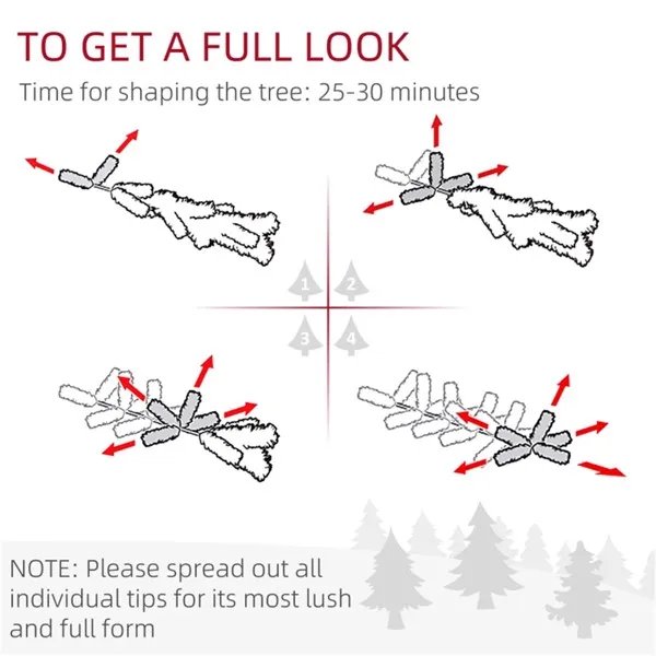 In order to get a full appearance, please spread out all individual tips to get optimally possible look from the tree, suggest you to take 25-30 minutes to shape the tree.